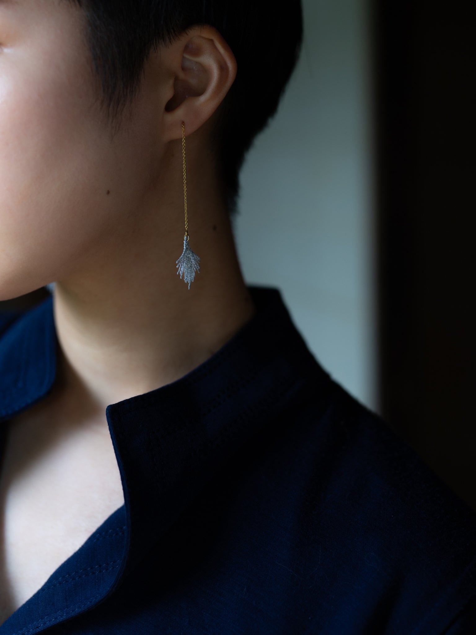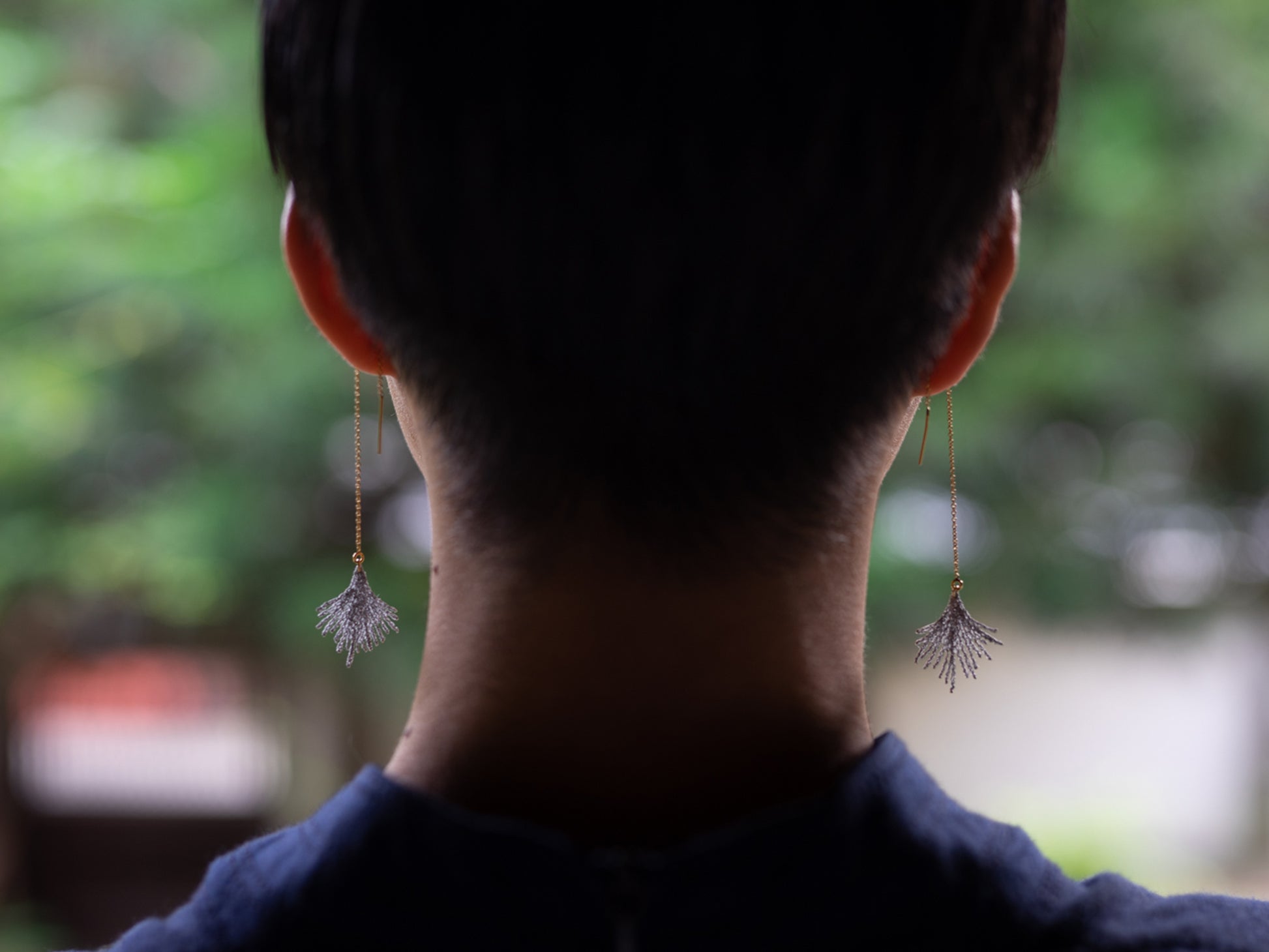 エアリーでシンプルながら、生命力や力強さを感じさせ、繊細に揺れる姿には華がある耳飾りです。